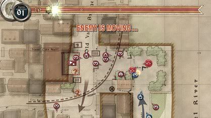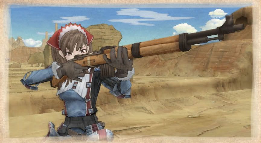 The second most striking feature of the game is the gameplay itself. Valkyria Chronicles is such a unique game that it could arguably be called it's own genre. While I would say it's most accurately described as a strategy RPG it also has a healthy dose of 3rd person shooter thrown in. For battles, you are presented with a tactical map representing the battlefield and the positions of any enemy units which your units can see. You have a certain allotment of command points on each of your turns which you use to take command of your individual units or issue battlefield "orders" which are basically commander level special abilities. When you take command of one of your units the game literally zooms down into the tactical map and you control that unit. There is an AP gauge on screen that depletes as you move the unit and you can only take one action (such as shooting, healing, etc.) which limits what you can do in one turn, however, you are in complete command of that unit. It is up to you do dodge enemy defensive fire (called intercept fire) as you run about the battlefield and line up your shots. Thankfully things never get to extremely intense since when you pull up your gun to aim the game essentially pauses, allowing you to breathe and line up the shot you are looking for. It all comes together beautifully in a way that I think can appeal to more action driven shooter fans while not alienating traditional SRPG fans like myself.